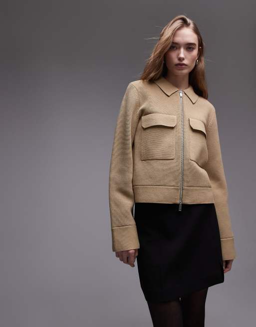 ARKET - Giacca multitasche in maglia compatta di puro cotone beige scuro