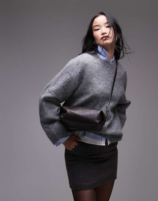 ARKET - Pochette squadrata in morbida pelle marrone con tracolla rimovibile