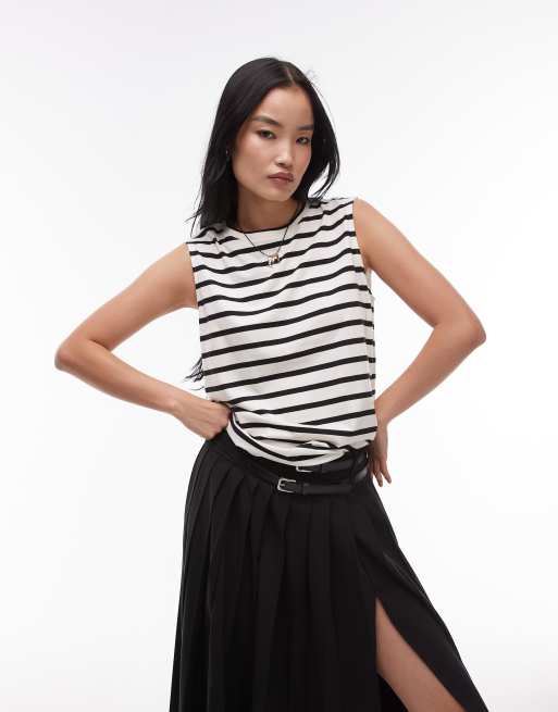 ARKET - T-shirt in jersey blu navy e bianca a righe con maniche ad aletta
