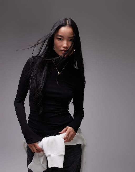 ARKET - Top a maniche lunghe in jersey trasparente a coste nero