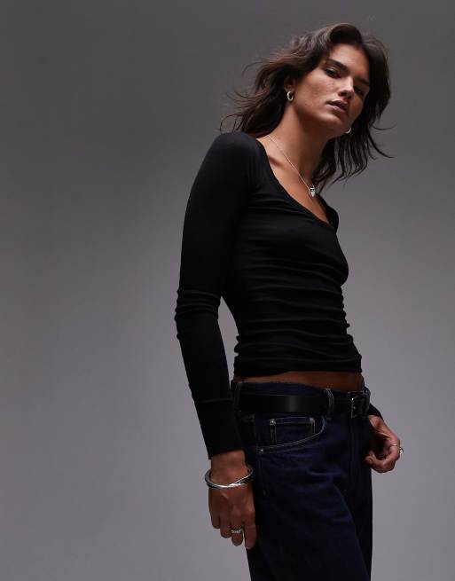 ARKET - Top aderente in lana nero con maniche lunghe e scollo rotondo