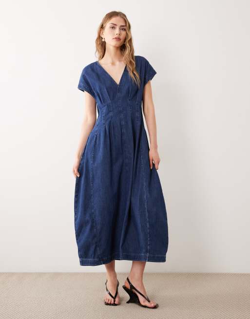 ARKET - Vestito lungo a maniche corte a palloncino blu lavaggio medio