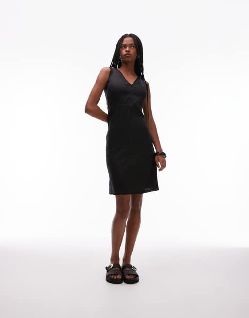 ARKET - Vestito midi a trapezio nero in misto lino con scollo a V e volant