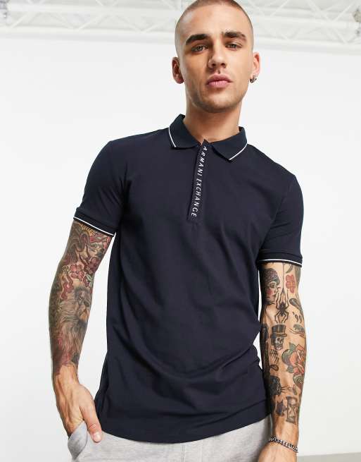 Armani Exchange - Camicia polo blu navy con colletto con logo