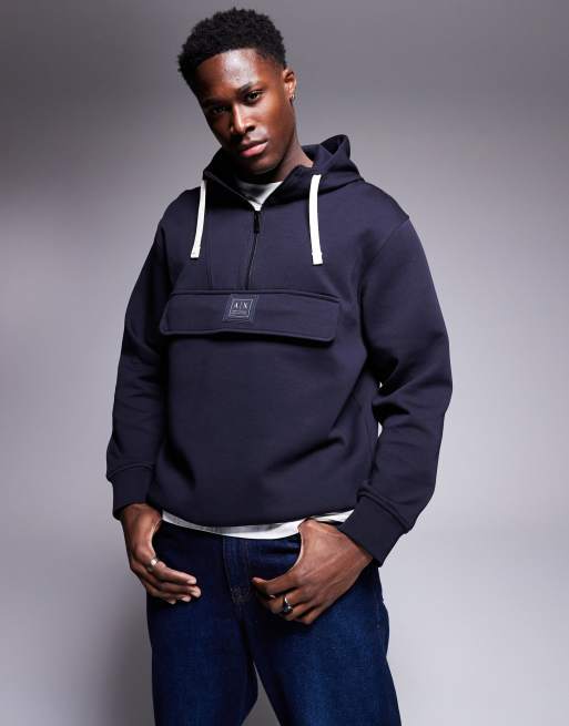 Armani Exchange - Felpa con cappuccio blu navy con logo al centro