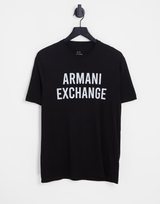 Armani Exchange - T-shirt con logo olografico nera