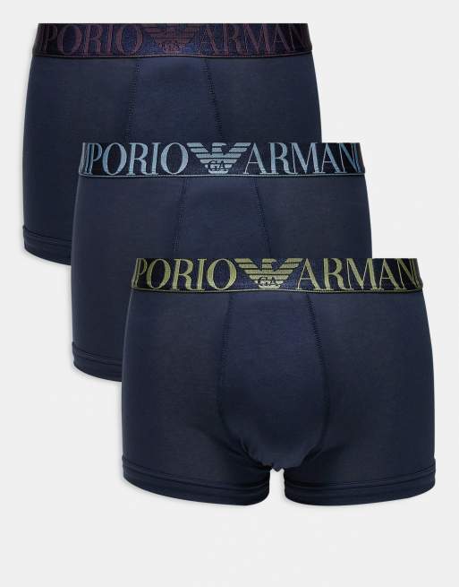 Emporio Armani - Bodywear - Confezione da 3 boxer aderenti blu navy con fascia in vita con logo