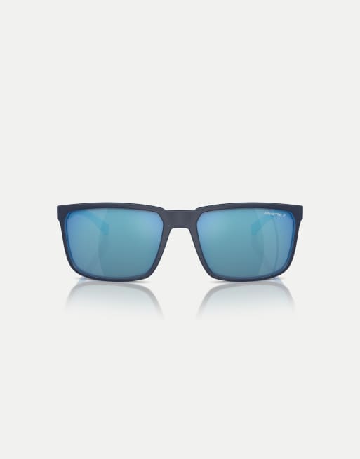 Arnette - Stripe - Occhiali da sole rettangolari con lenti blu a specchio polarizzate e parte superiore blu navy opaco su azzurro
