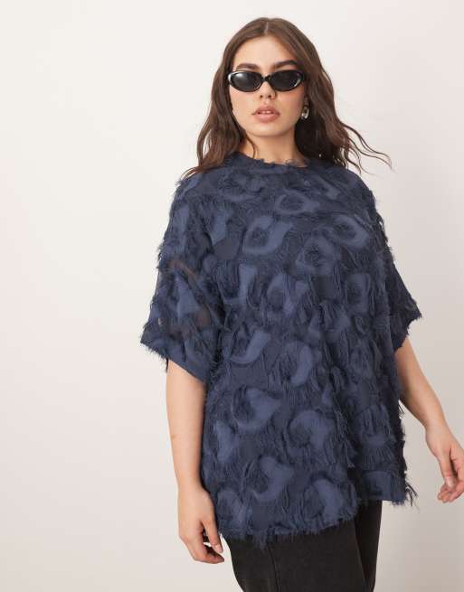 ARRANGE Curve - T-shirt blu oversize testurizzata