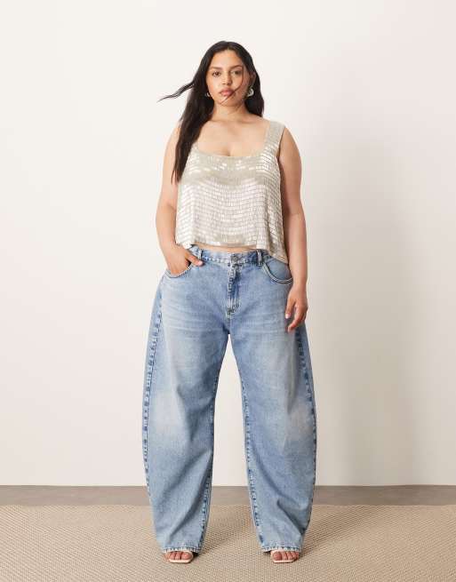 ARRANGE Curve - Tova - Jeans affusolati con gamba curva lavaggio chiaro con risvolto