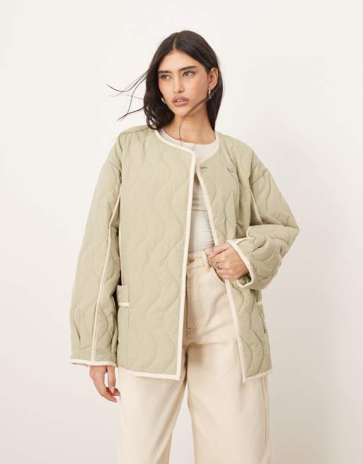 ARRANGE - Giacca oversize trapuntata verde salvia con finiture a contrasto