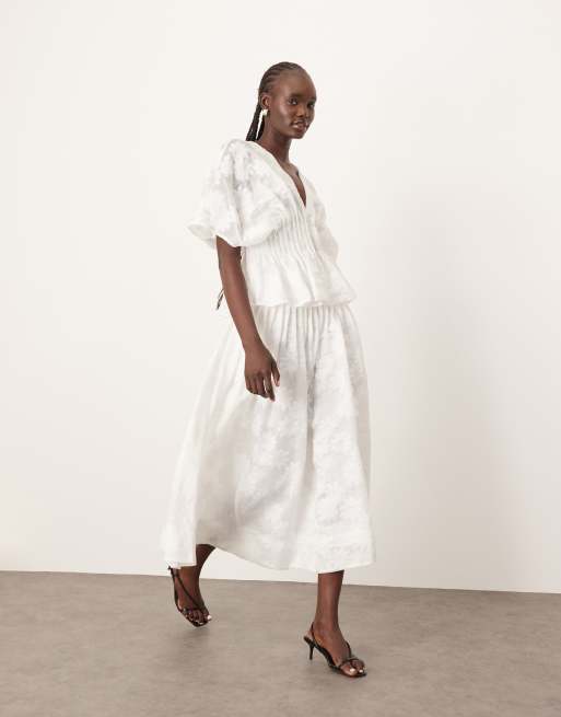 ARRANGE - Gonna midi con vita scesa in organza bianca a fiori con nervature in coordinato
