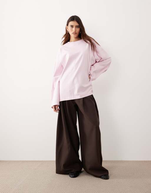 ARRANGE - T-shirt a maniche lunghe oversize in cotone rosa chiaro