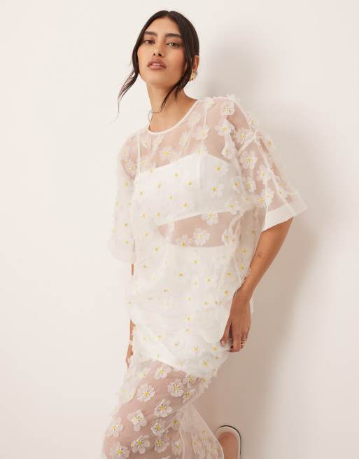 ARRANGE - T-shirt oversize trasparente con margherite 3D in coordinato