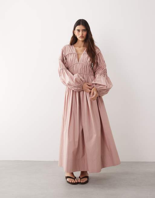ARRANGE - Vestito lungo rosa con maniche ovoidali e cuciture a vista