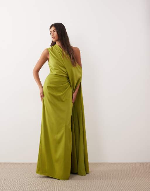 ARRANGE - Vestito lungo verde oliva con spalla molto scivolata