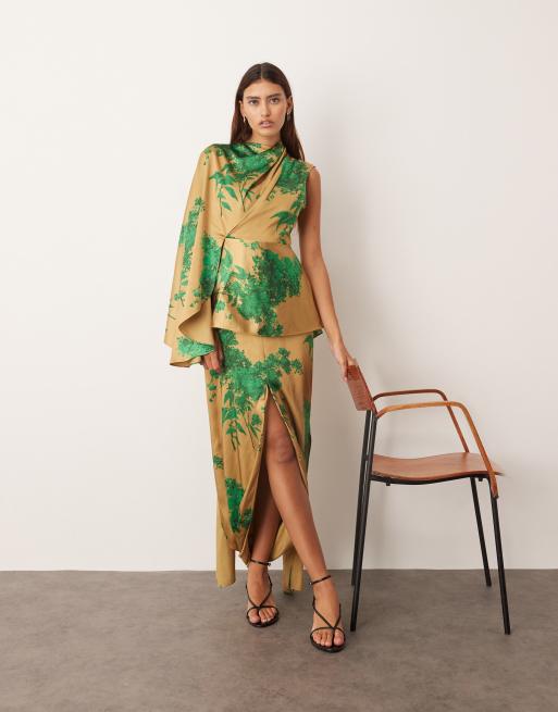 ARRANGE - Vestito midi asimmetrico con manica a mantella, pannello drappeggiato e stampa a fiori