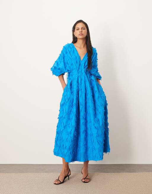 ARRANGE - Vestito midi blu acceso testurizzato allacciato in vita con pieghe
