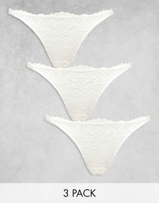 ASOS DESIGN - Confezione da 3 perizomi in pizzo bianco