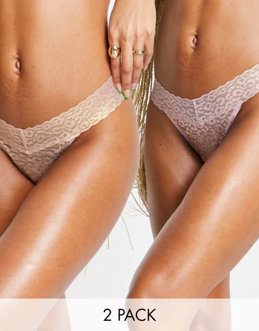 ASOS DESIGN - Confezione da due perizomi malibu in pizzo metallizzato lilla polvere e visone con stampa animalier