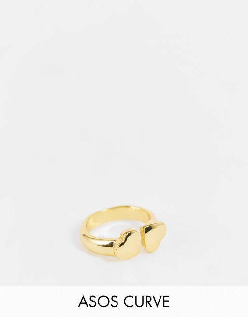 ASOS DESIGN Curve - Anello placcato oro 14k con doppio cuore