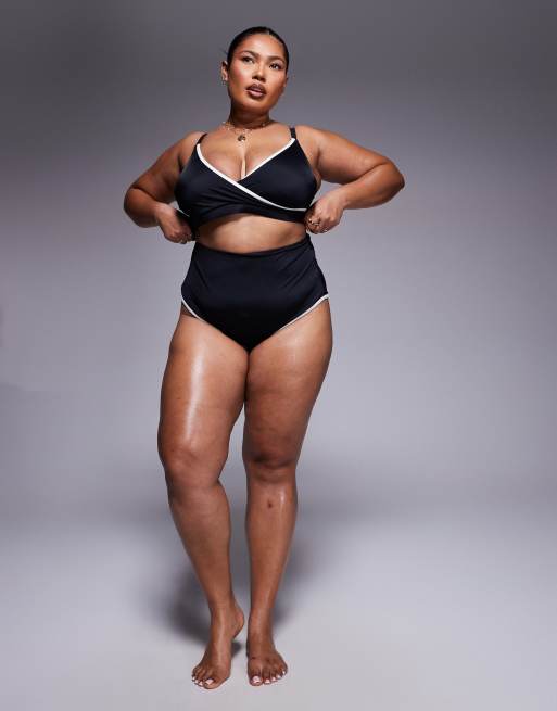 ASOS DESIGN Curve - Bikini nero con profili a contrasto