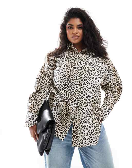 ASOS DESIGN Curve - Camicia oversize leopardata