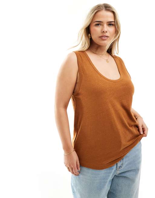ASOS DESIGN Curve - Canotta effetto lino color terracotta con scollo rotondo