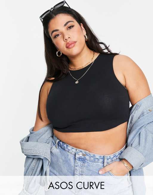 ASOS DESIGN Curve - Canotta super corta accollata nera