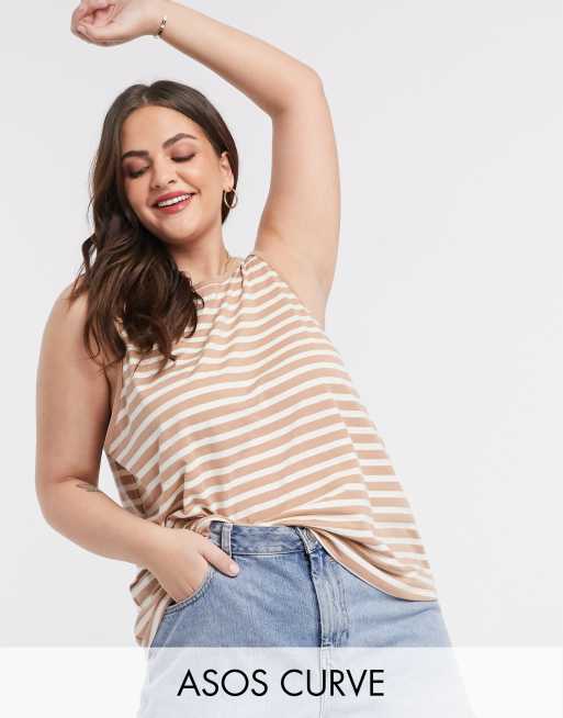 ASOS DESIGN Curve - Canotta svasata visone e bianca rigata