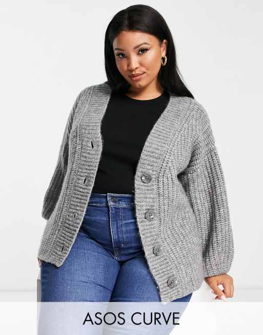 ASOS DESIGN Curve - Cardigan grigio a maglia grossa