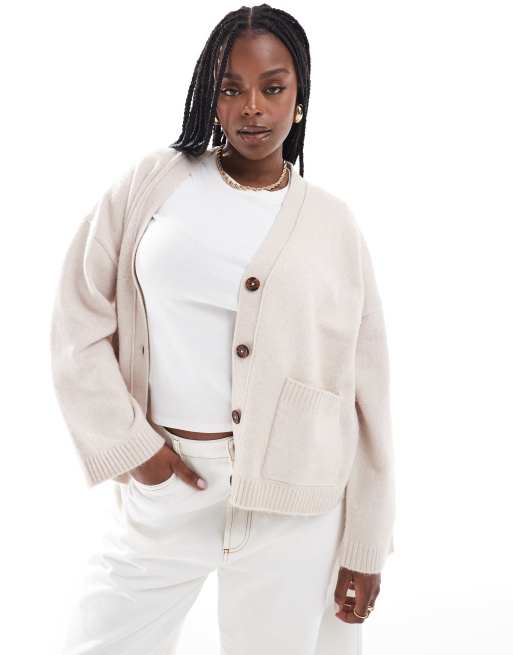 ASOS DESIGN Curve - Cardigan squadrato color crema con scollo a V e tasche