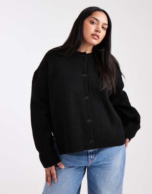 ASOS DESIGN Curve - Cardigan squadrato nero girocollo con spacchi laterali