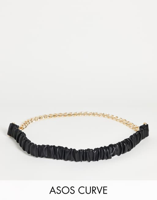 ASOS DESIGN Curve - Cintura per vita e fianchi nera arricciata e con catena a barbazzale