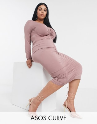 ASOS DESIGN Curve Co-ord - Top e minigonna marrone chiaro con ruches