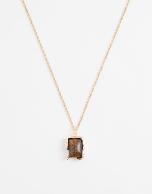 ASOS DESIGN Curve - Collana dorata con ciondolo occhio di tigre semiprezioso