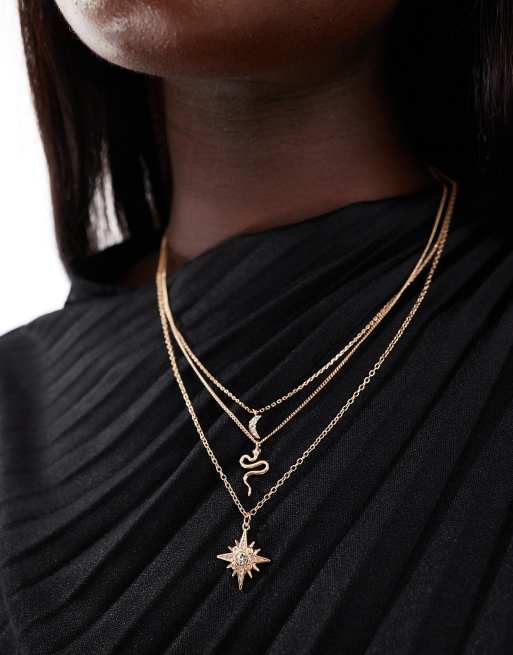 ASOS DESIGN Curve - Collana multifilo dorata con ciondoli a forma di serpente e corpi celesti