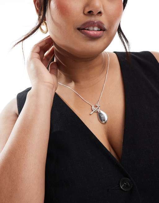 ASOS DESIGN Curve - Collana placcata argento con ciondolo effetto fuso e barretta a T