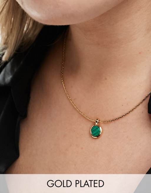 ASOS DESIGN Curve - Collana placcata oro 14k con ciondolo di malachite