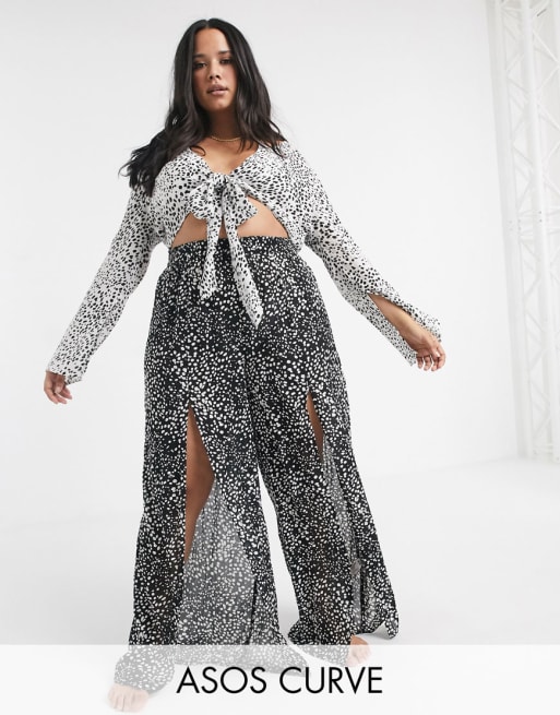 ASOS DESIGN Curve - Coordinato da mare con laccetti davanti e stampa a pois monocromatica