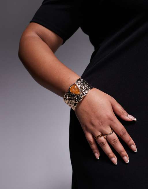 ASOS DESIGN Curve - Edizione limitata - Bracciale rigido dorato con design astratto zigrinato effetto metallo fuso