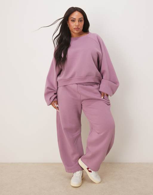 ASOS DESIGN Curve - Felpa con maniche a palloncino e joggers bombati rosa antico in coordinato