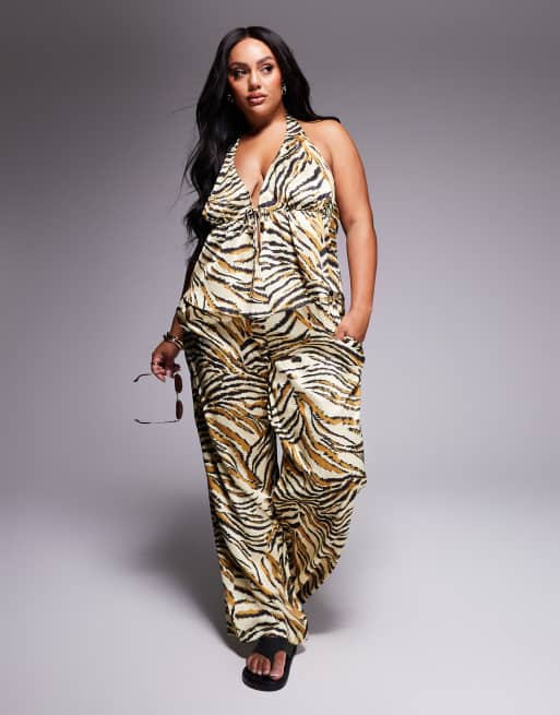 ASOS DESIGN Curve - Gia - Completo in raso con stampa animalier