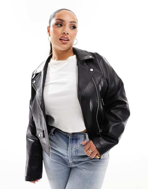 ASOS DESIGN Curve - Giacca biker in pelle sintetica nera