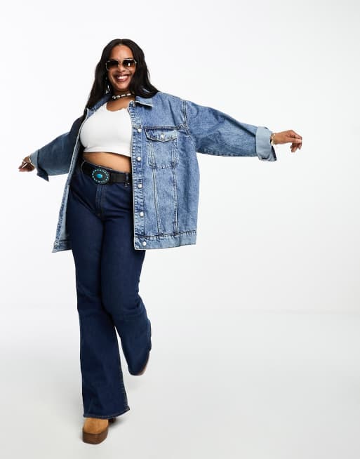 ASOS DESIGN Curve - Giacca di jeans oversize anni '90 lavaggio medio