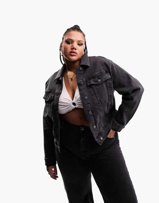 ASOS DESIGN Curve - Giacca di jeans stile western nero slavato