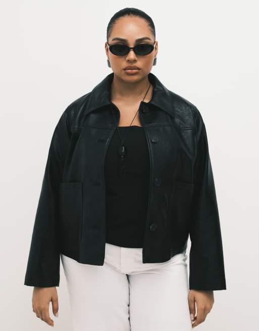 ASOS DESIGN Curve - Giacca harrington in pelle sintetica nera