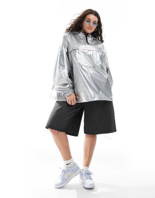 ASOS DESIGN Curve - Giacca impermeabile ripiegabile color argento metallizzato