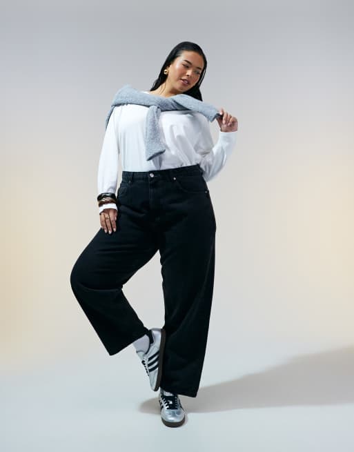 ASOS DESIGN Curve - Jeans a cilindro nero slavato