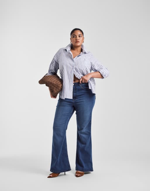 ASOS DESIGN Curve - Jeans a zampa modellanti power stretch blu medio scuro